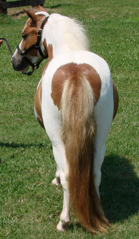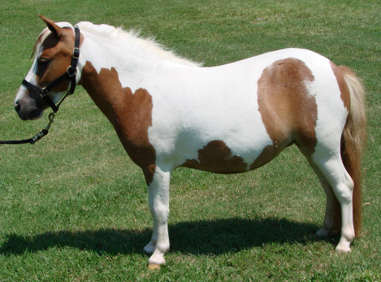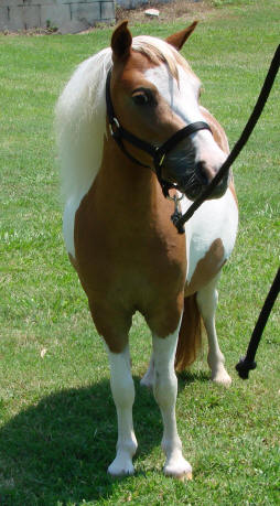 Shown above is Dent Berrie Basket a small red and white pinto filly born on May 16, 2010 at 10:30 PM and is 31.00 inches tall. Her sire is Royal Chief and her dam is Dent Claybasket. Price---EMail For Price.